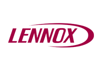 Logo de la marque Lennox, affiché en rouge avec une courbe dynamique autour du texte, sur un fond transparent.